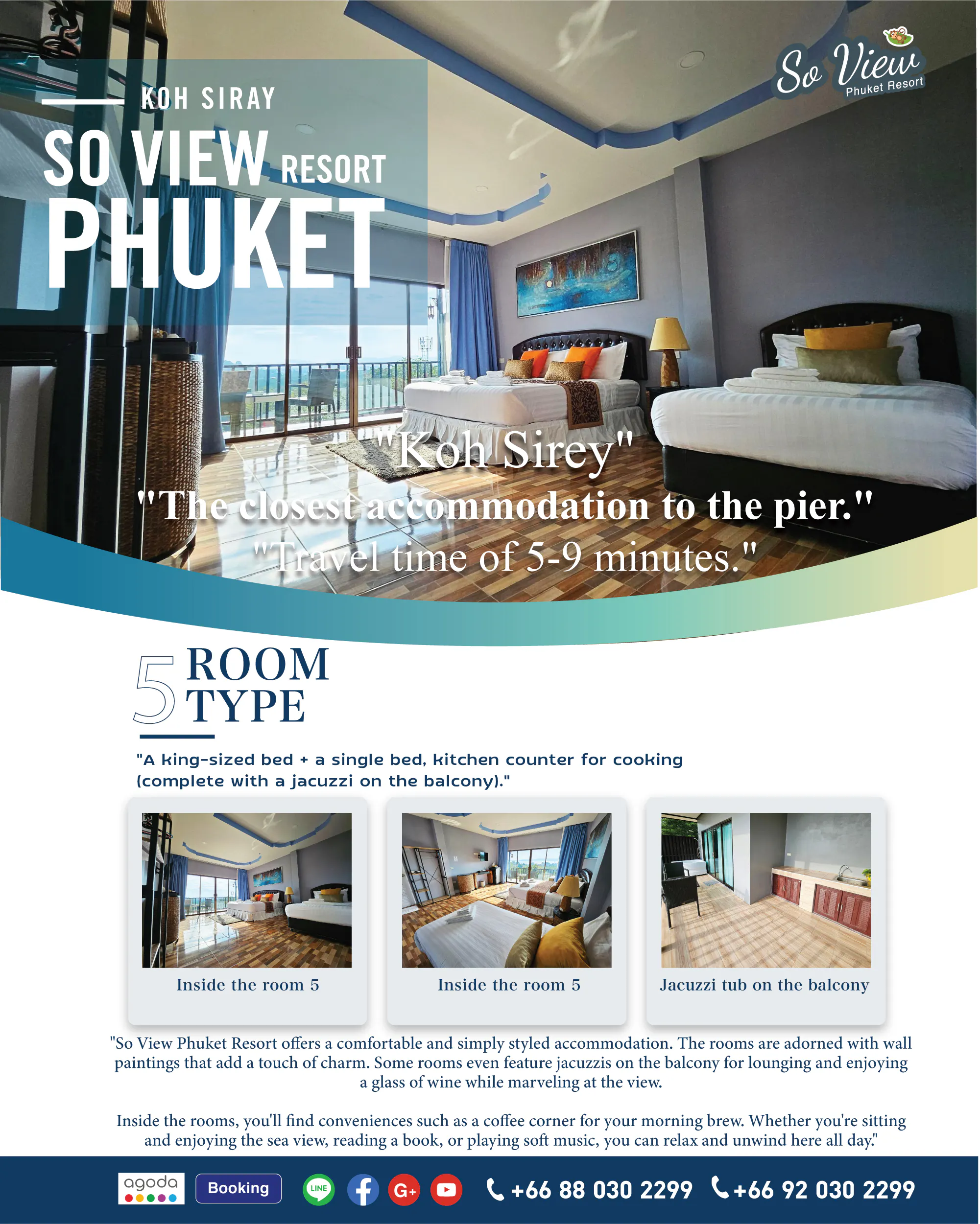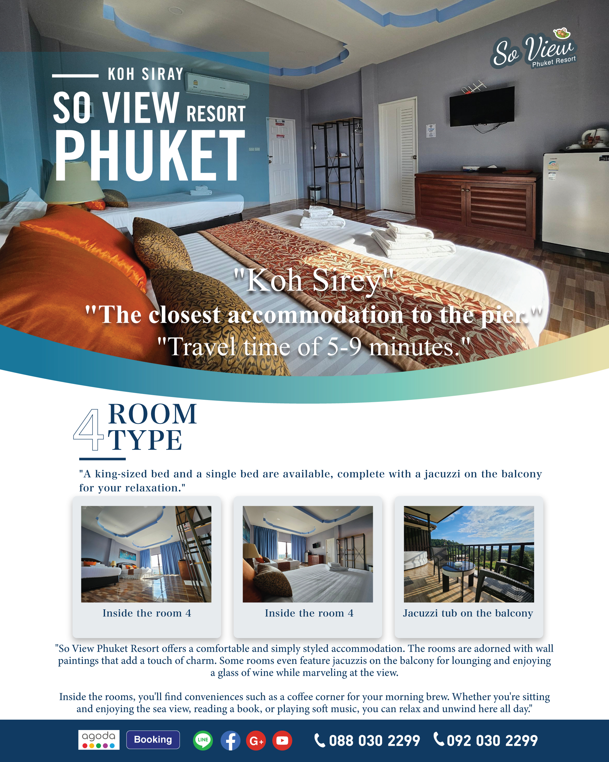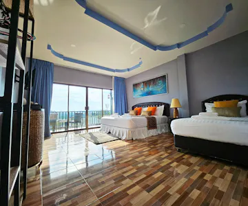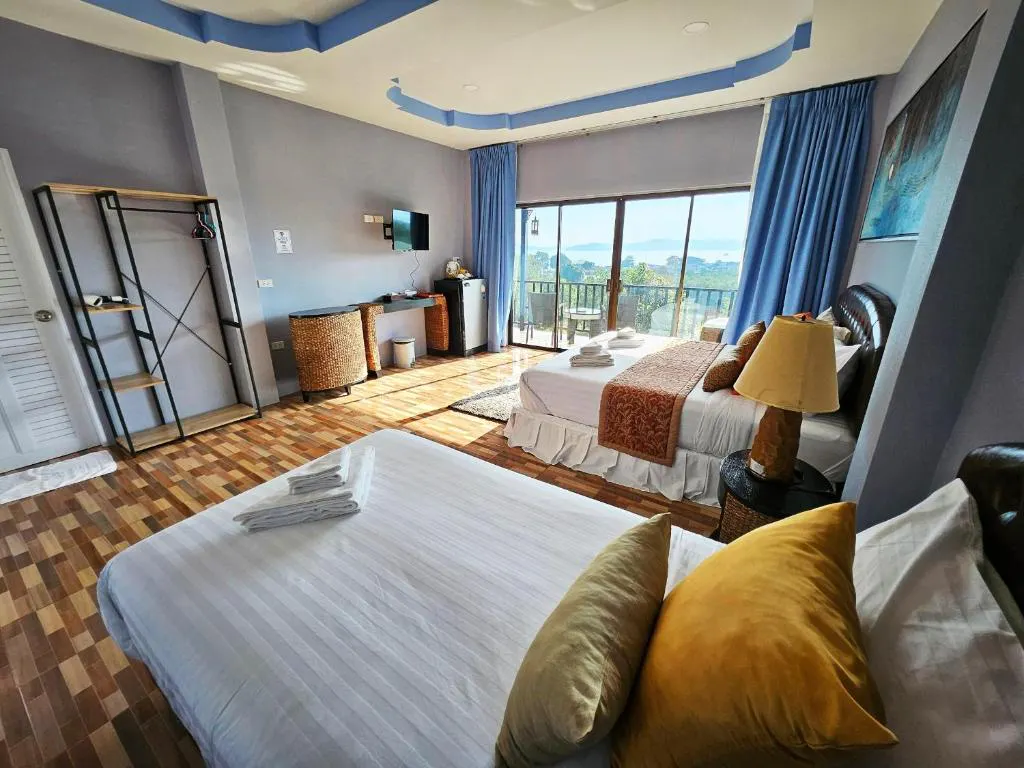 ห้องใหญ่เตียงใหญ่+เตียงเล็ก+มีอ่างอาบน้ำริมระเบียง 4,5